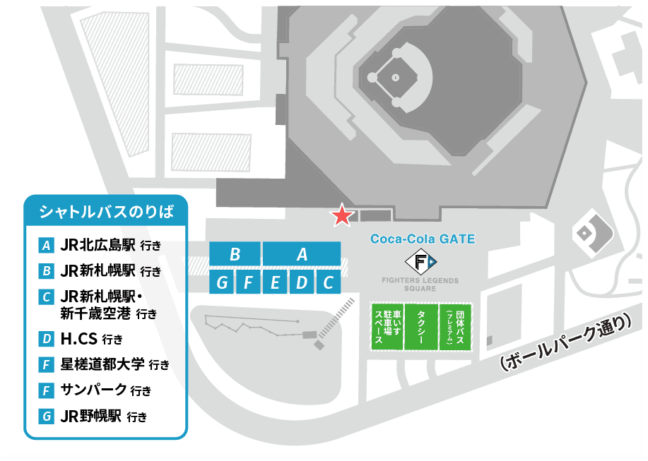 2026シーズンよりFビレッジ内の乗降の位置が変わります。ご注意下さい。